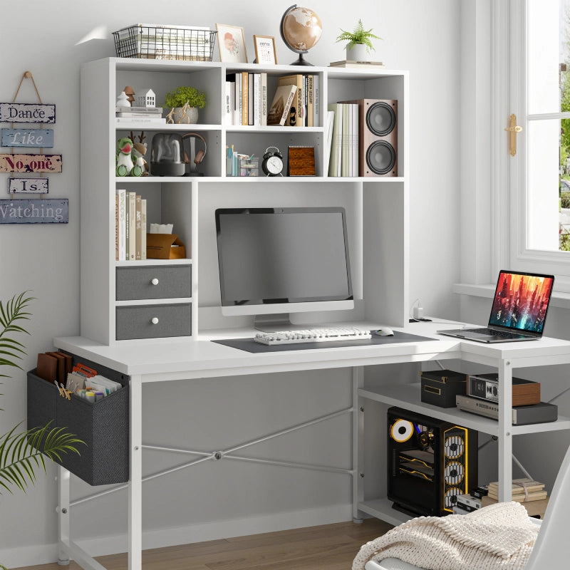 - Additionally, it includes two fabric drawers at the bottom, perfect for storing smaller or personal items. Achieve a cleaner, more efficient workspace with this powerful desk hutch.