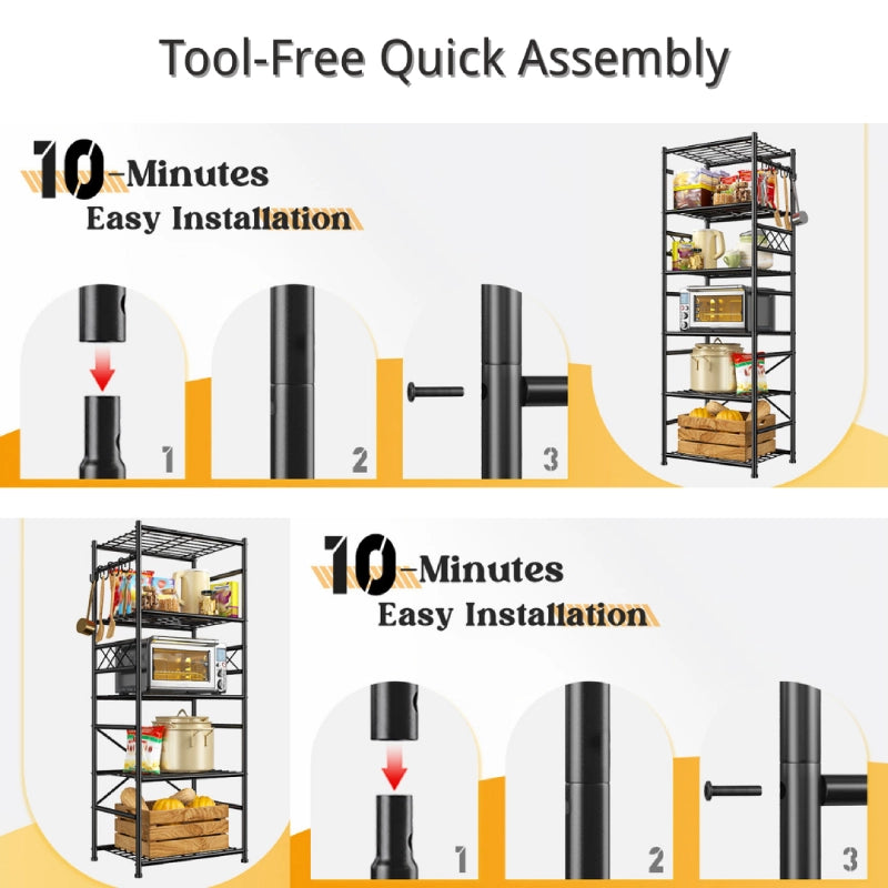 Yes, our storage rack is very easy to install, taking only 10 to 15 minutes. We provide clear installation instructions and a video guide, along with all necessary tools—no need to purchase additional items. Should you have any questions, feel free to contact our professional service team anytime.