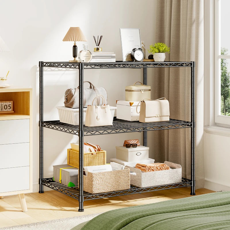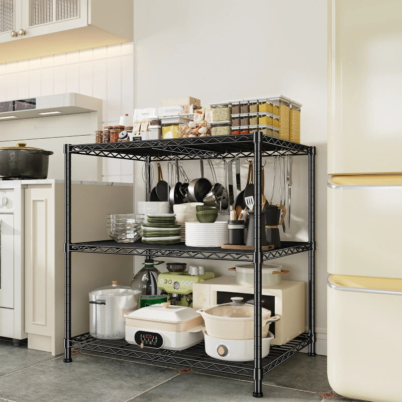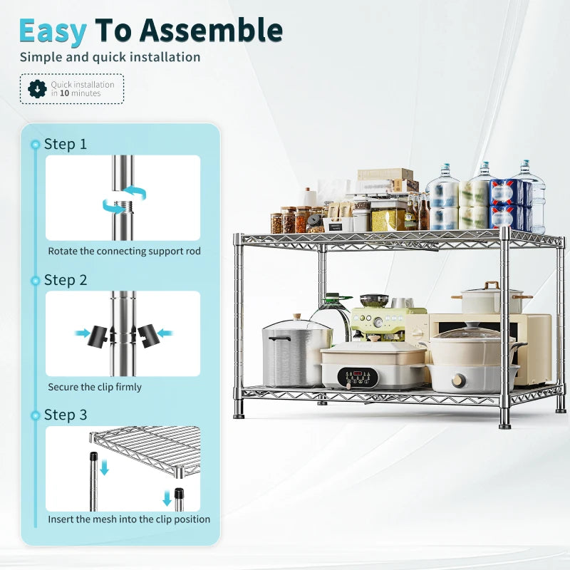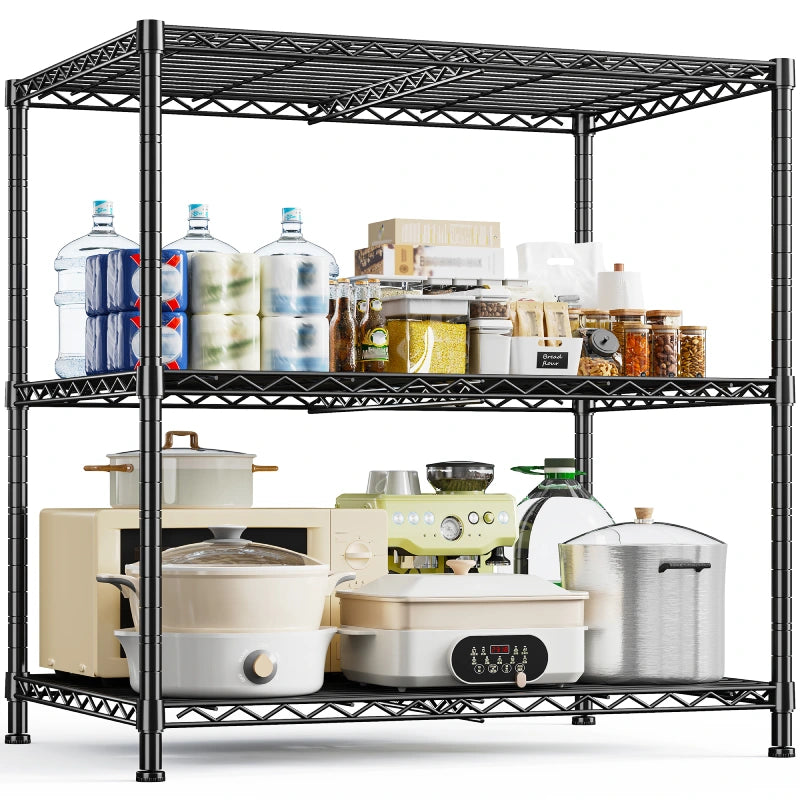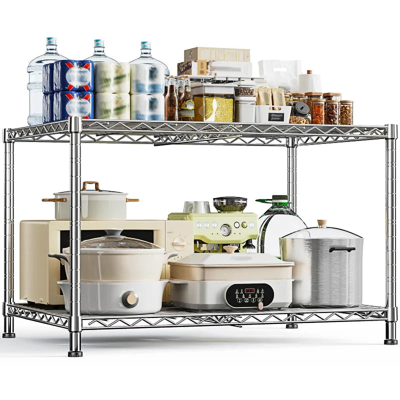 Choose the storage setup that fits your space. This pantry shelving unit is available in both 2-tier and 3-tier designs, with two sleek finishes.Its compact footprint fits easily into corners, kitchens, closets, or utility areas while maximizing vertical storage without taking up too much floor space.