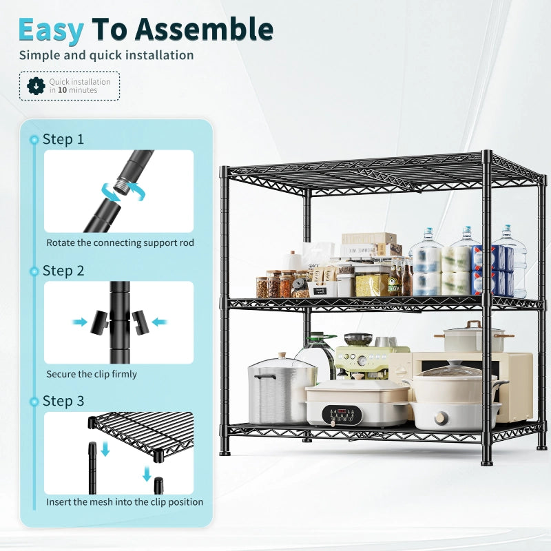 Skip the tools and complicated setup. This metal shelving unit is designed for fast, tool-free assembly, allowing you to install it in just a few minutes by following the clear instructions—so you can start organizing your space right away.