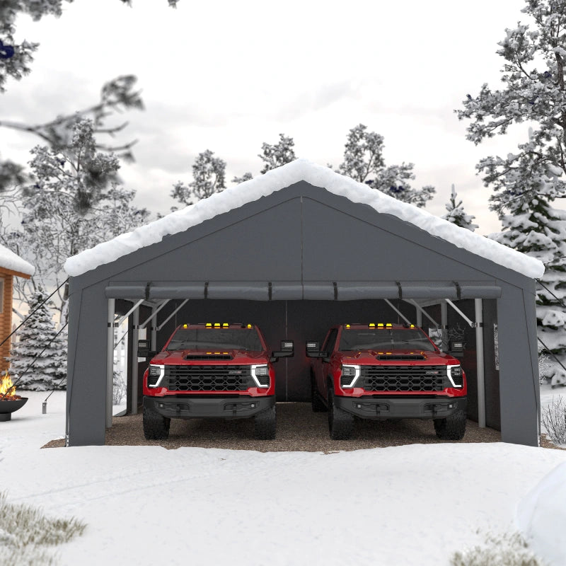 With a generous 20x20 footprint, this carport kit comfortably accommodates two cars RVS, providing ample space for easy parking and vehicle access.