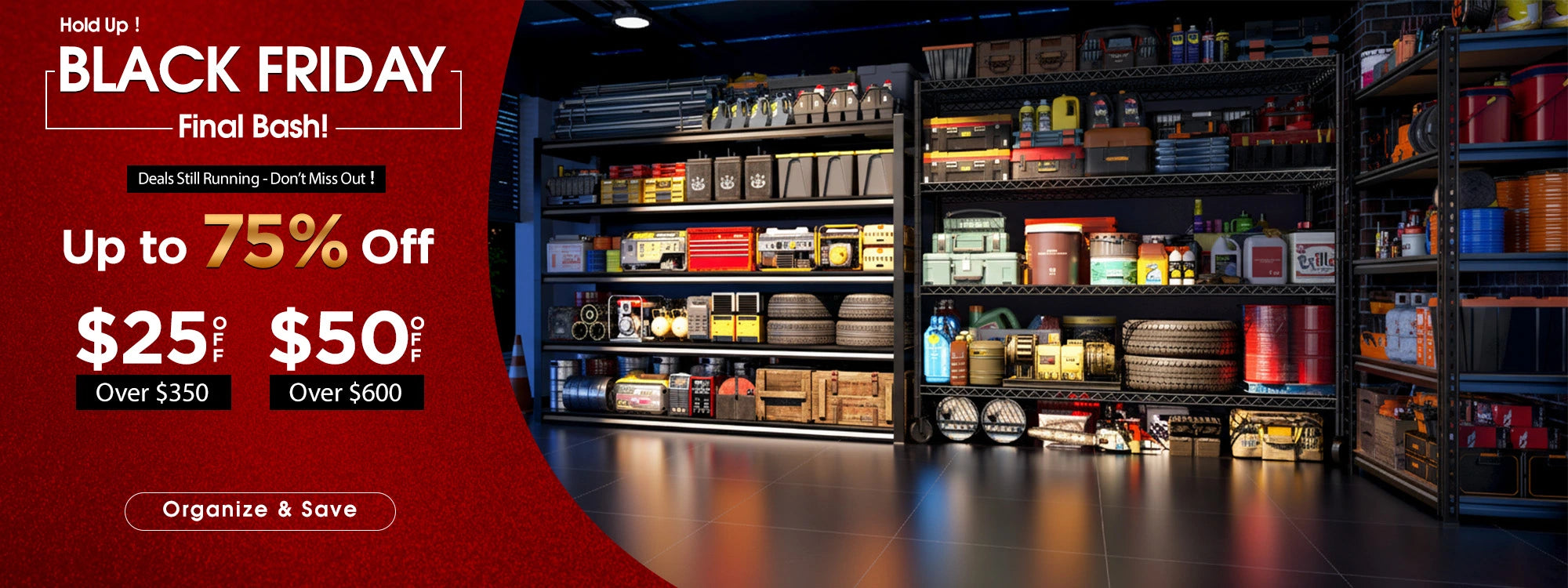 Special Rolled Edge Column Design Say goodbye to flimsy single-layer storage shelves that scratch easily and wobble under pressure!Our heavy duty garage shelving unit features a reinforced rolled-edge column design that’s thicker and stronger, boosting both stability and load-bearing capacity....