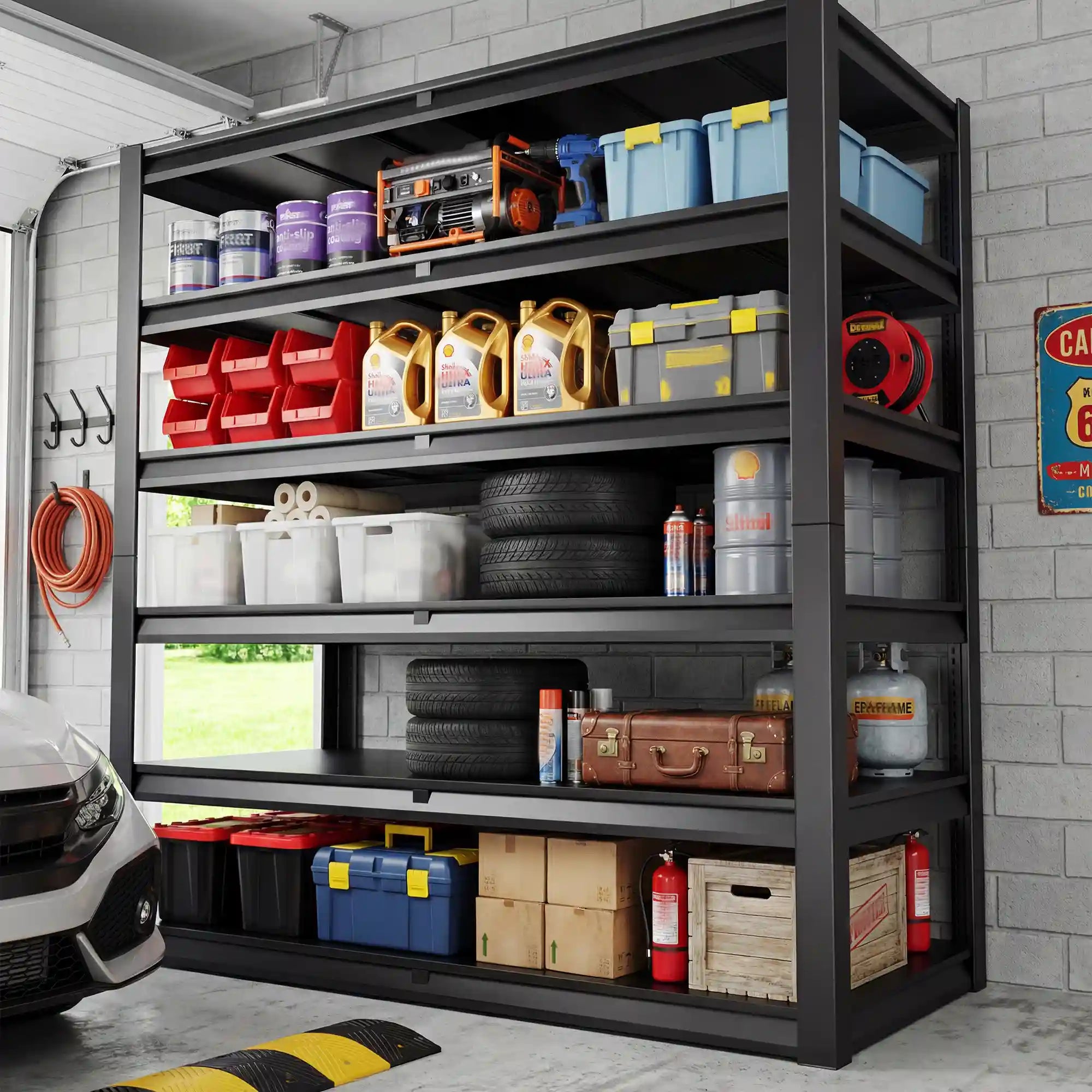 - REIBII 6-tier shelving for garage made of high-quality steel, each sturdy shelf can hold up to 583 LBS (evenly distributed),Metal Garage shelf Unit hold up to 3500 lbs(Per Unit). making it ideal for bulky or heavy items without risk of bending or sagging.
