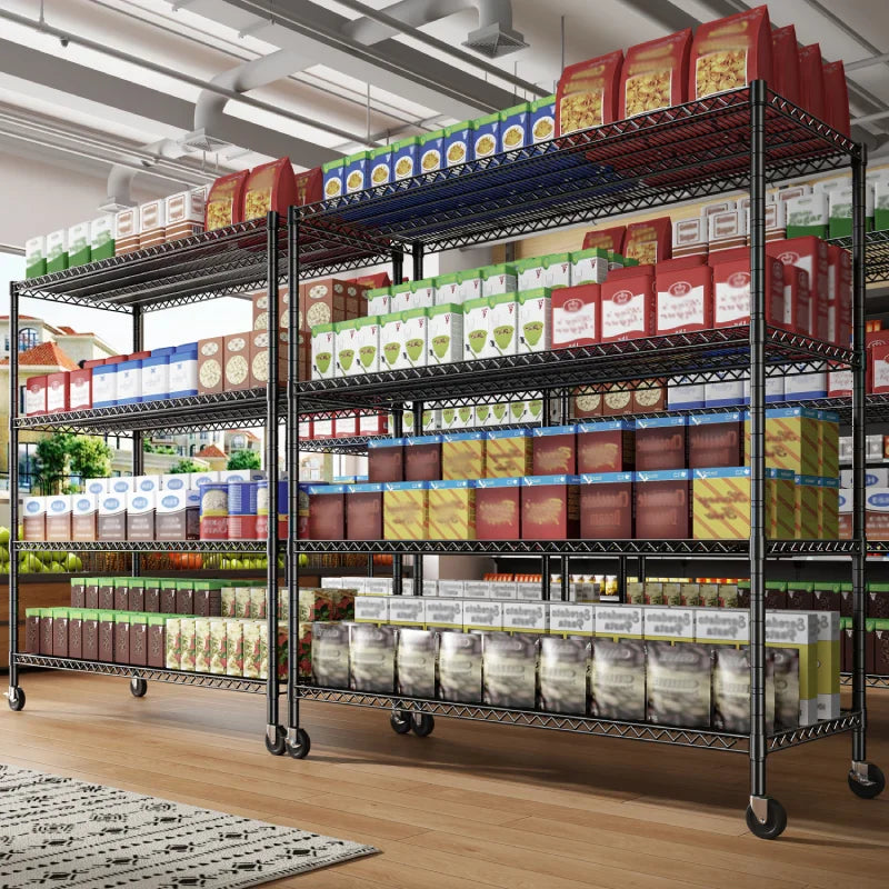 Reibii 75.6"H x 56"W Heavy Duty Wire Shelving with Wheels, 2550 lbs Adjustable Metal Storage Shelves for Garage Closet Commercial