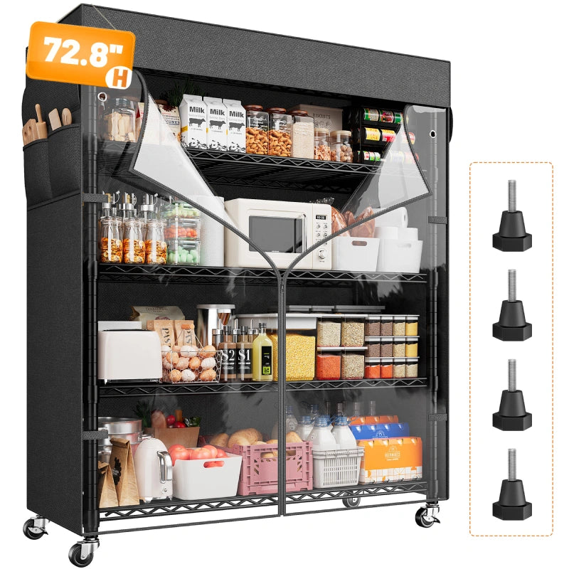 - Considering your need to protect stored items (such as food or clothes), this wire shelves for storage comes with a thoughtful Oxford fabric cover (with a transparent PVC front) to effectively keep dust and insects out, ensuring your items stay clean and dry. The benefits of this rack go far beyond just storage!
