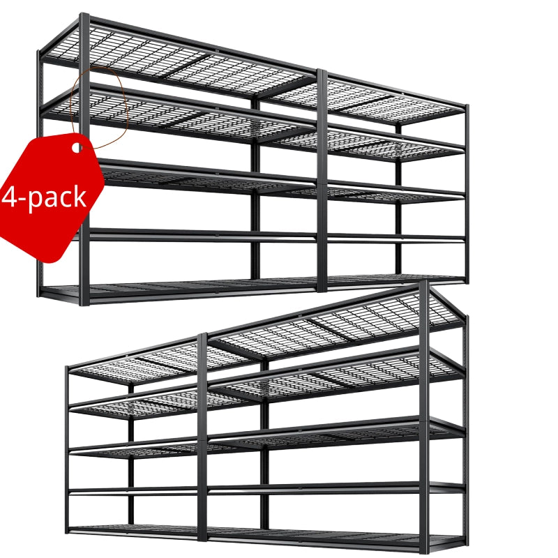 - Versatile Organization for Any Space – Transform cluttered garages, basements, warehouses, or workshops into organized, efficient spaces. The open-shelf design provides excellent visibility and quick access to everything—from gardening supplies and small toolboxes to camping gear, large garden equipment, and logistics totes. This versatility makes the metal shelving unit ideal for use in garages, basements, warehouses, retail shops, supermarkets, and a wide range of industrial environments.