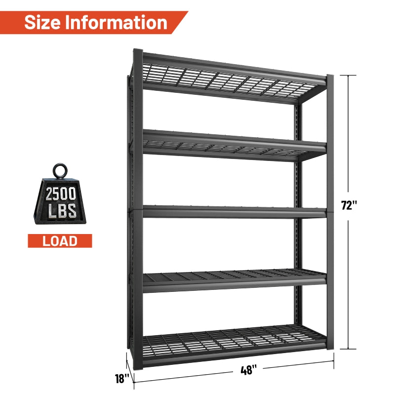 REIBII 5 Tiers Storage Shelves 2500LBS basement storage shelves for Garage, Warehouse, Industrial,diy storage shelves