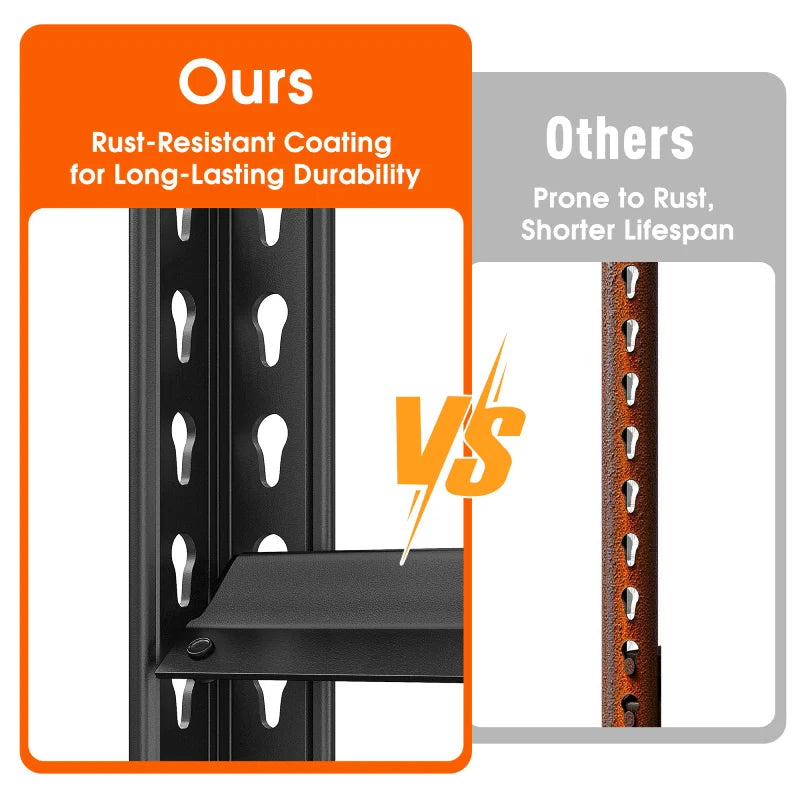 - Unlike standard flat-edge columns, our utility rack features rolled-edge uprights that add strength and stability while protecting your hands during assembly. This thoughtful design not only makes setup safer and easier, but also enhances long-term durability—so you get a sturdier shelf that stands the test of time.