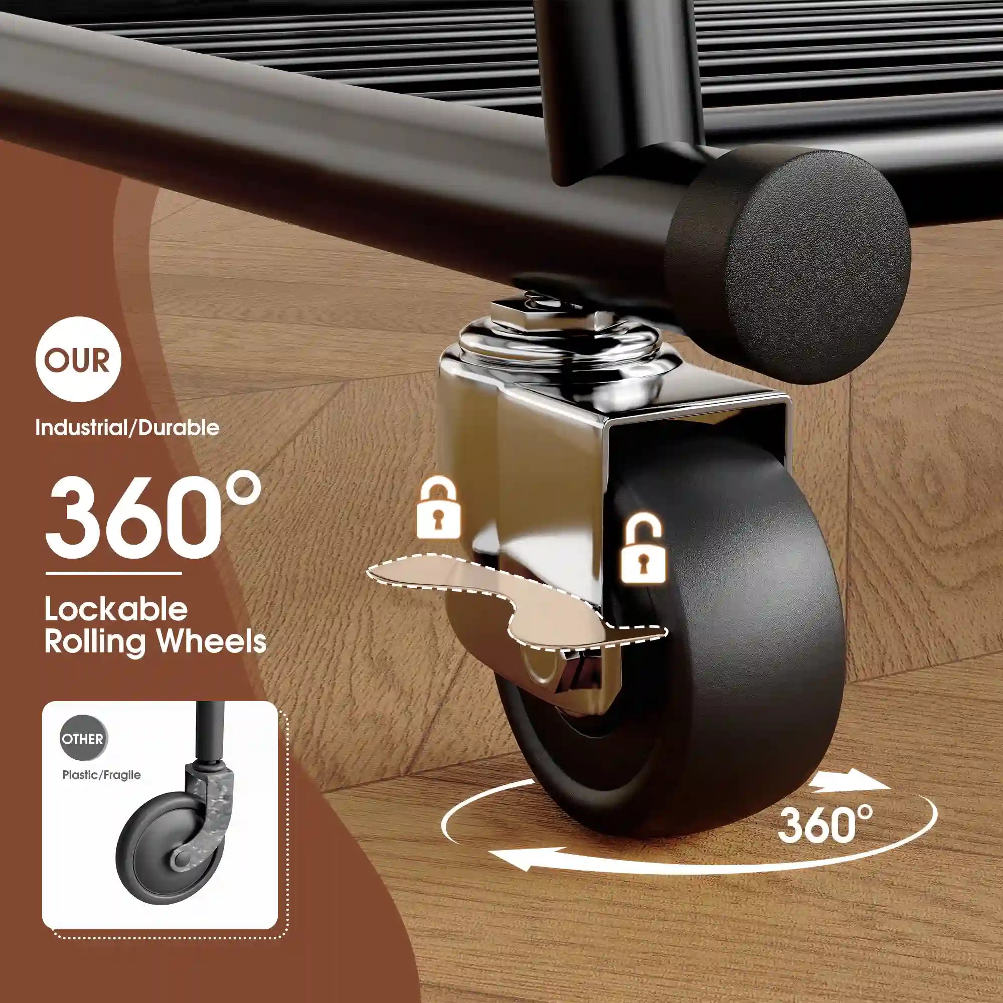 Enhanced Mobility: The rolling design ensures effortless movement, thanks to high-quality rubber wheels offering 360-degree flexible rotation and reliable brake functionality. Whether on smooth or uneven surfaces, stability is guaranteed.