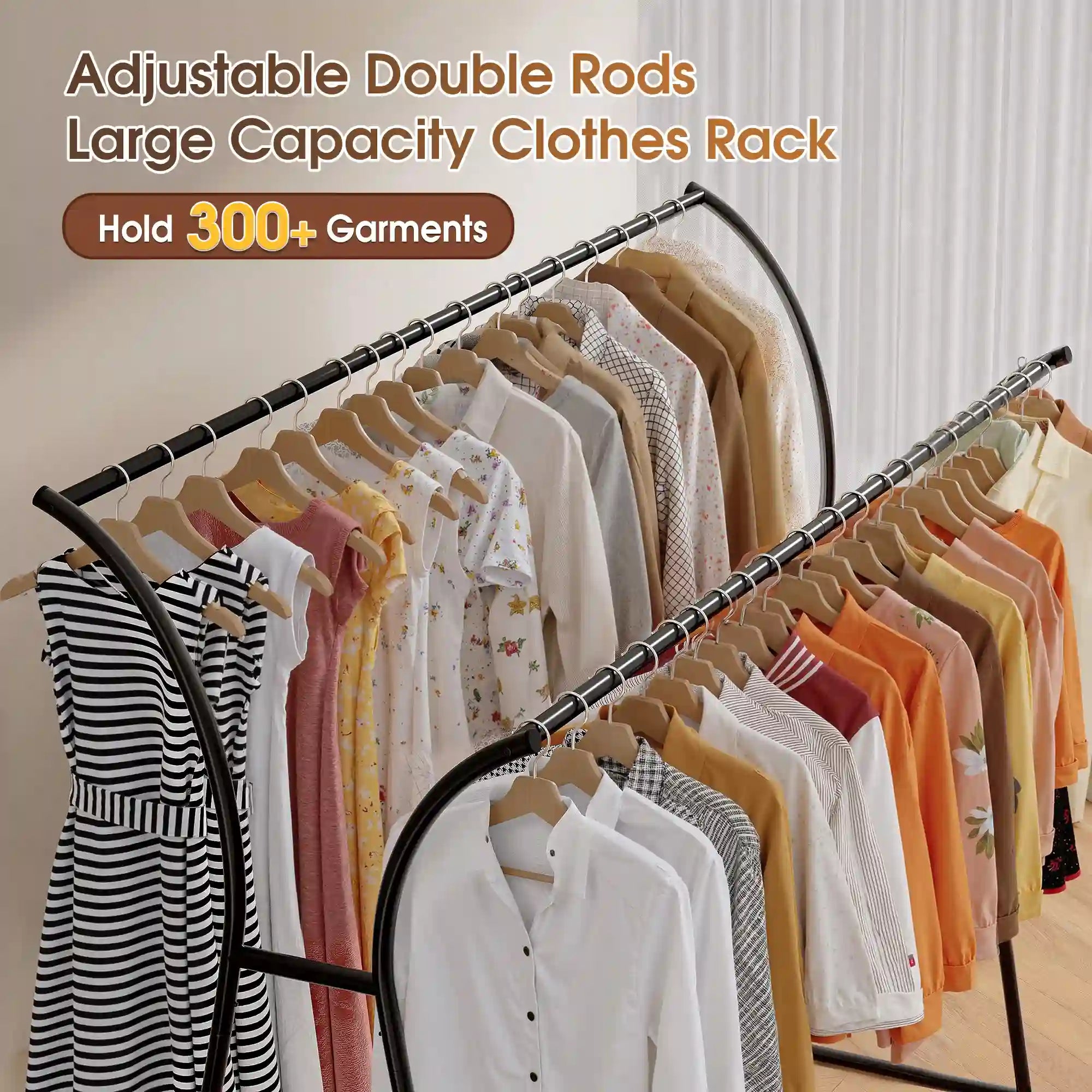 Expanded Storage: With this roller clothing rack, you enjoy the storage capacity equivalent to two single rail clothes hanger racks plus a shoe rack. This not only simplifies your clothing organization but also helps you save money in the process.