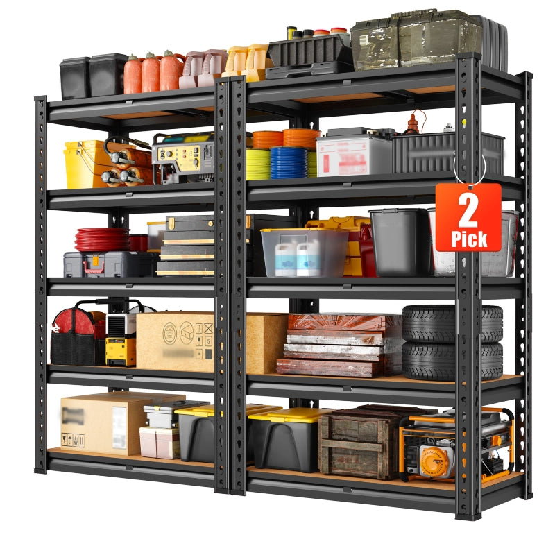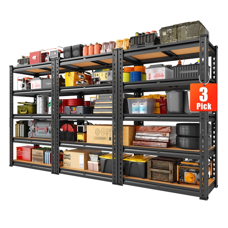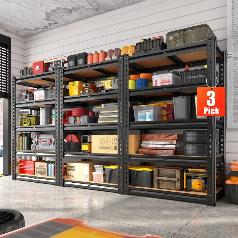 Each shelf can hold up to 404 lbs, with a total load capacity of 2020 lbs. thanks to the 0.32" thick high-quality metal frame and high-density boards with a density of 760kg/m³, this heavy-duty garage shelving is built to last and support all your storage needs.