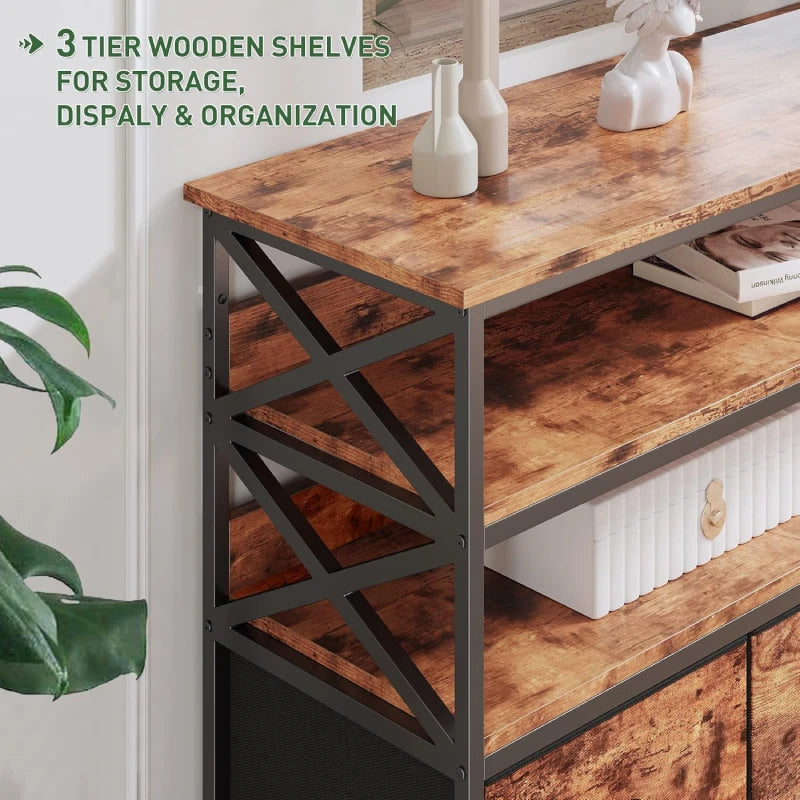 - Use it as a TV console behind the sofa, an entertainment center, console table, side or display table, or even as an entryway organizer.
